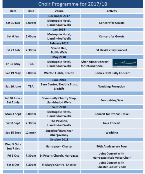 "Comrades in Song" from Builth Wells, Powys, in the heart of Wales : Charity No. 1061889
