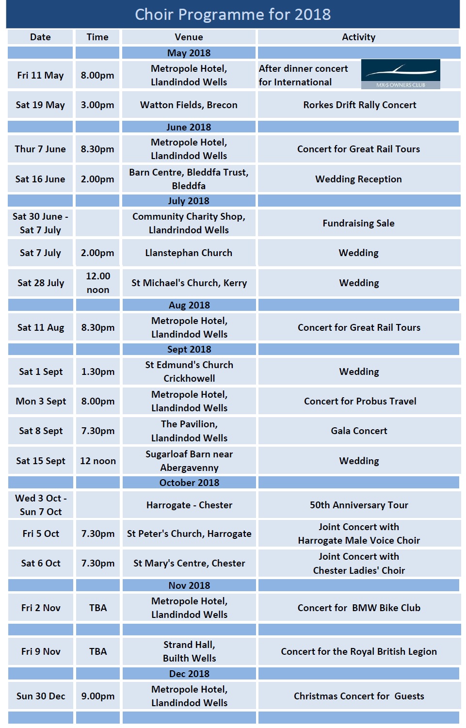 » 2018 Choir Diary