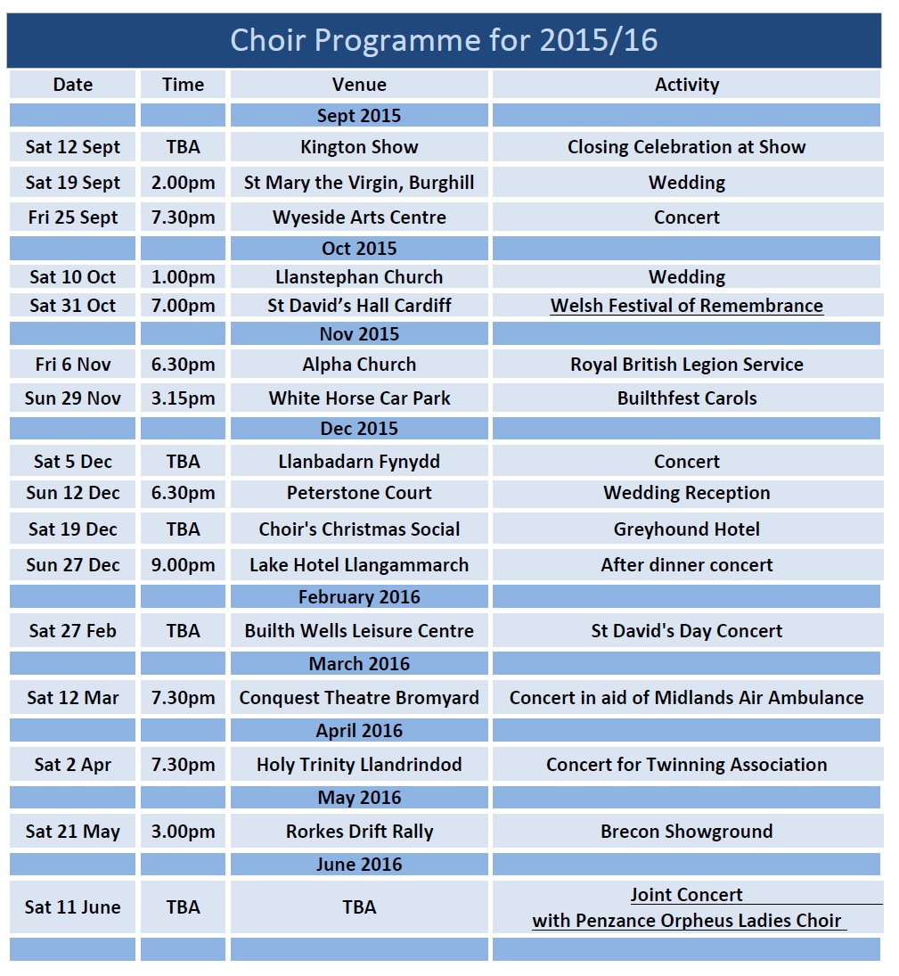 "Comrades in Song" from Builth Wells, Powys, in the heart of Wales : Charity No. 1061889