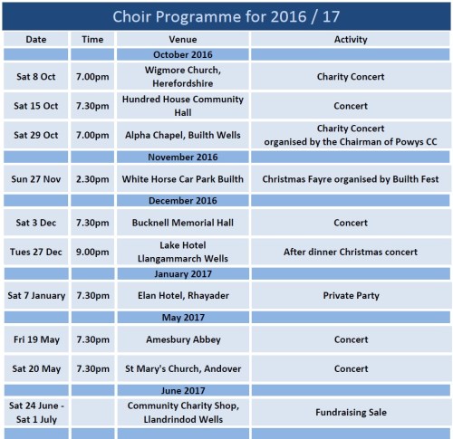 "Comrades in Song" from Builth Wells, Powys, in the heart of Wales : Charity No. 1061889
