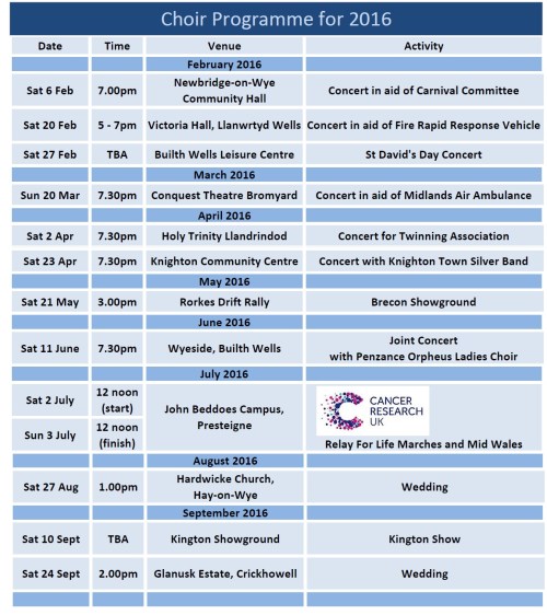 "Comrades in Song" from Builth Wells, Powys, in the heart of Wales : Charity No. 1061889