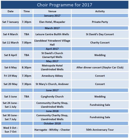 "Comrades in Song" from Builth Wells, Powys, in the heart of Wales : Charity No. 1061889