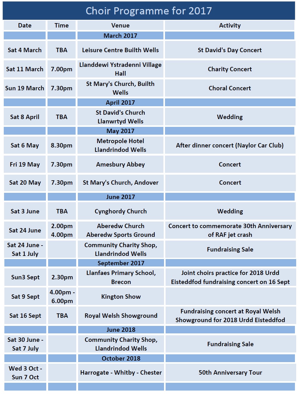 "Comrades in Song" from Builth Wells, Powys, in the heart of Wales : Charity No. 1061889