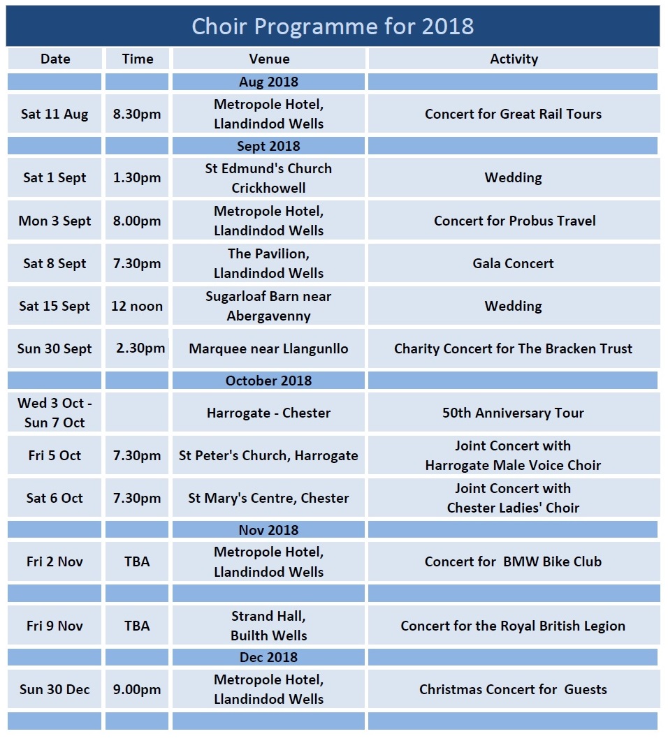 "Comrades in Song" from Builth Wells, Powys, in the heart of Wales : Charity No. 1061889