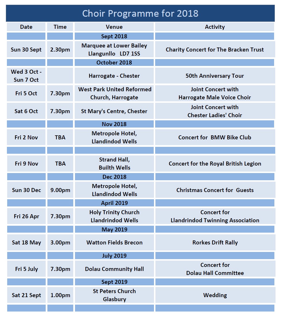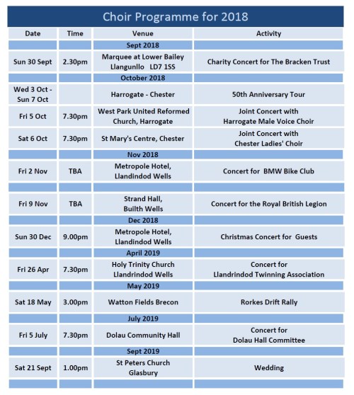 "Comrades in Song" from Builth Wells, Powys, in the heart of Wales : Charity No. 1061889