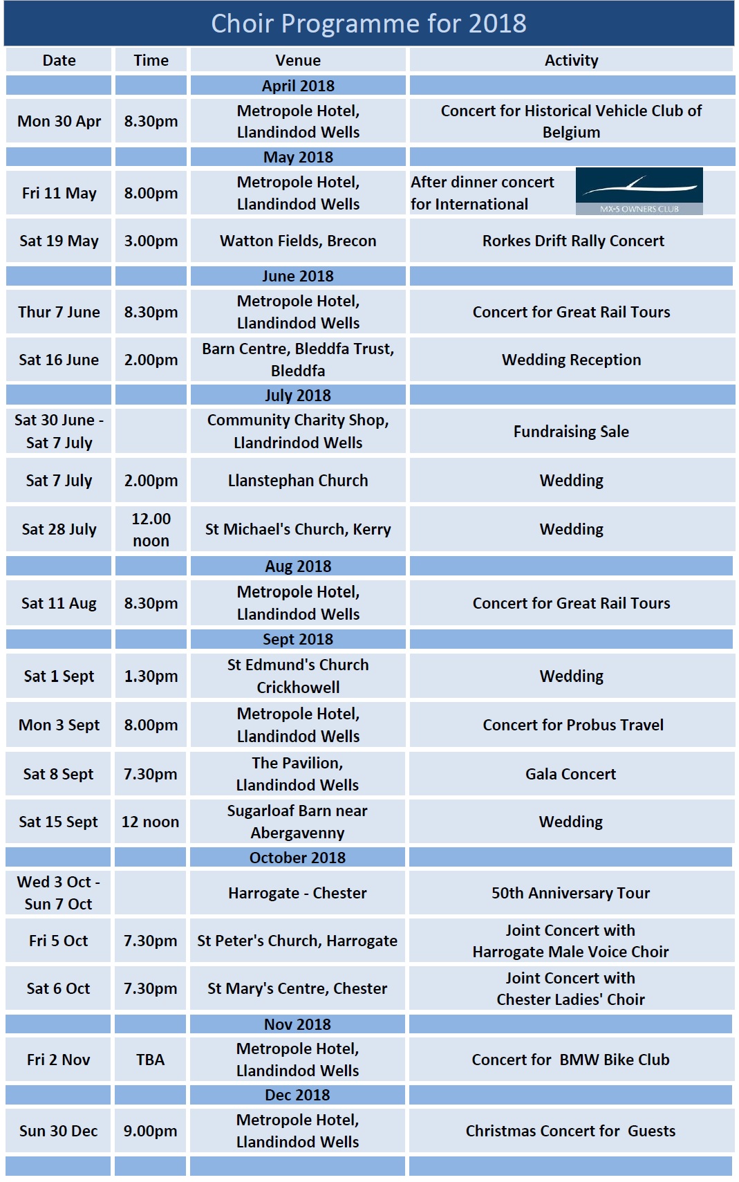 "Comrades in Song" from Builth Wells, Powys, in the heart of Wales : Charity No. 1061889