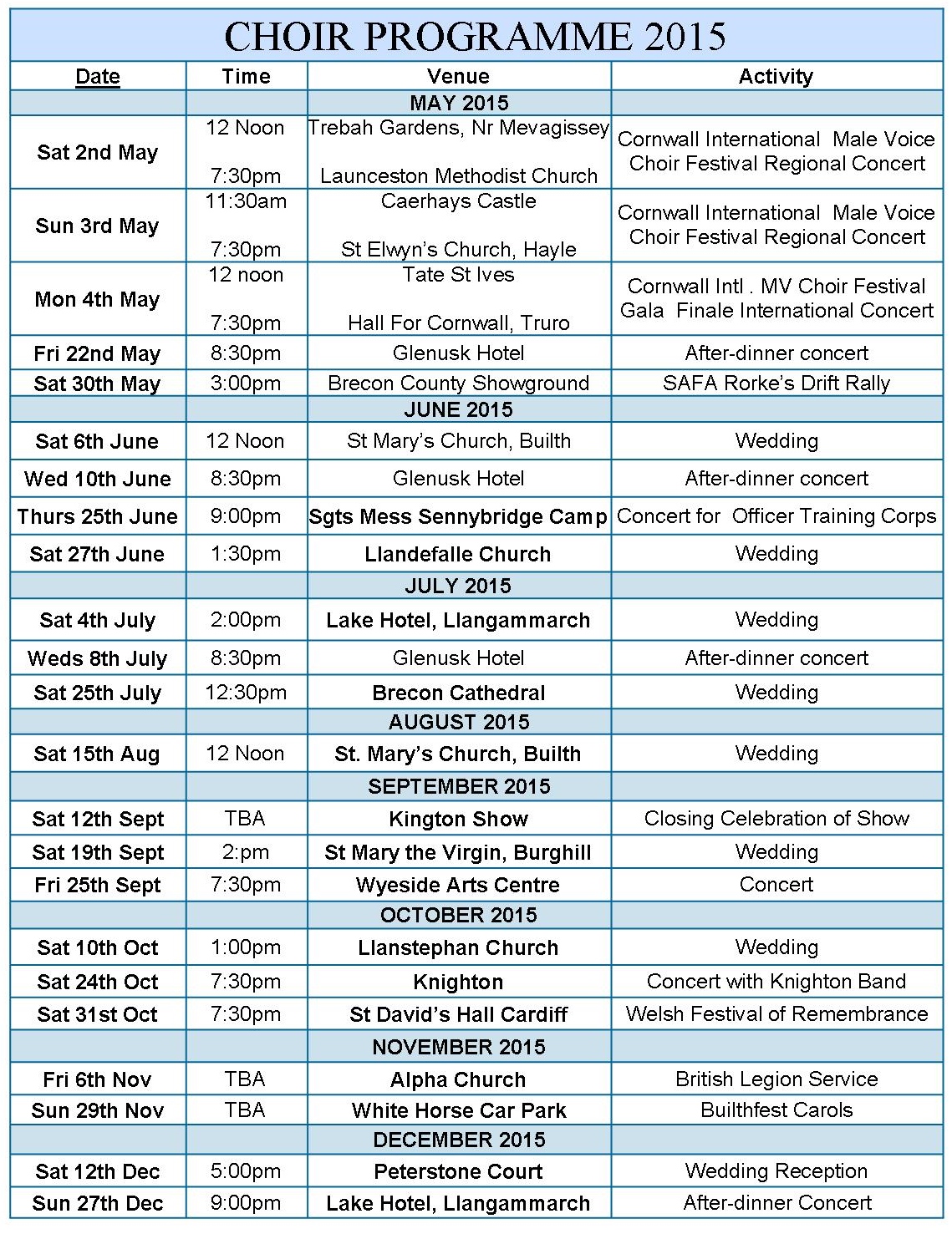 "Comrades in Song" from Builth Wells, Powys, in the heart of Wales : Charity No. 1061889