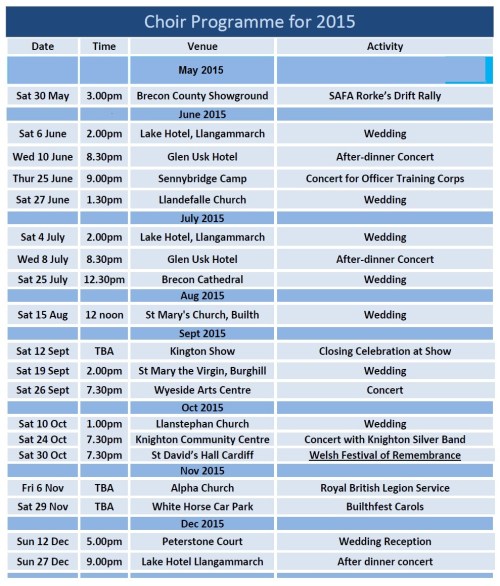 "Comrades in Song" from Builth Wells, Powys, in the heart of Wales : Charity No. 1061889