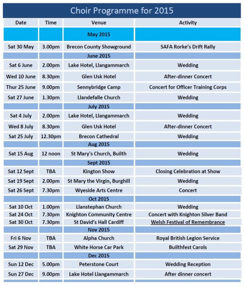 "Comrades in Song" from Builth Wells, Powys, in the heart of Wales : Charity No. 1061889