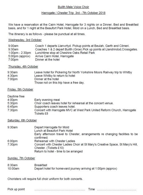 50th Anniversary Tour to North Yorkshire & Cheshire – October 2018