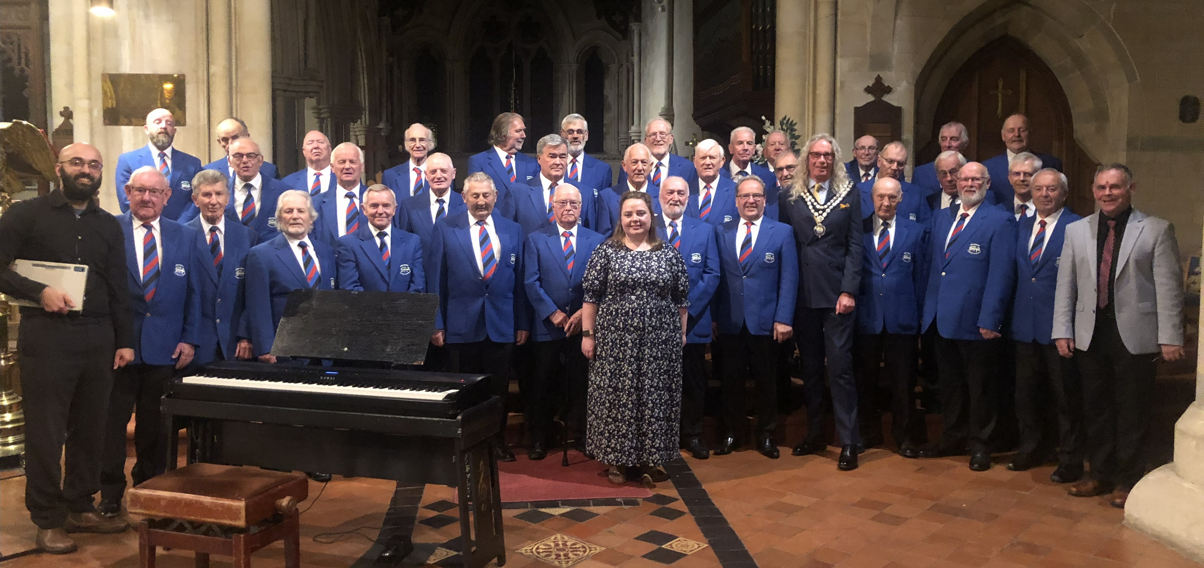 Builth Male Voice Choir with soloist Holly Richards and Mayor Cllr Steve Deeks-D’Silva after a very successful and enjoyable concert at Holy Trinity Church Landrindod. The concert was a fundraising event to support the activities of the Llandrindod Wells Twinning Association which is promoting a junior football team exchange visit to Bad Rappenau Germany in 2026. Mayor Cllr Steve Deeks-D’Silva made a special presentation of £200 to Helen Skelton Chair of the Llandrindod Wells Twinning Association. Helen gave a vote of thanks to all who had contributed to the successful concert and particular thanks to the Mayor and Llandrindod Wells Town Council for their support of Twinning with our twin towns of Contrexeville (France) and Bad Rappenau (Germany)