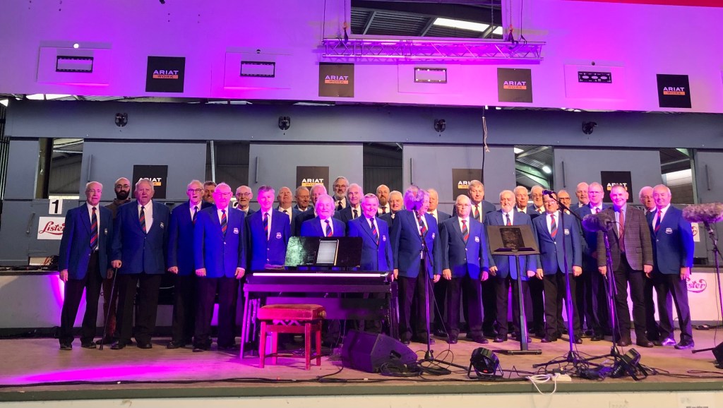 Builth Male Voice Choir opened the singing at the Sheep Shearing Centre on the first day of the Winter Fare at the Royal Welsh Showground. The Choir’s wide repertoire was very much appreciated by visitors to the Fare.