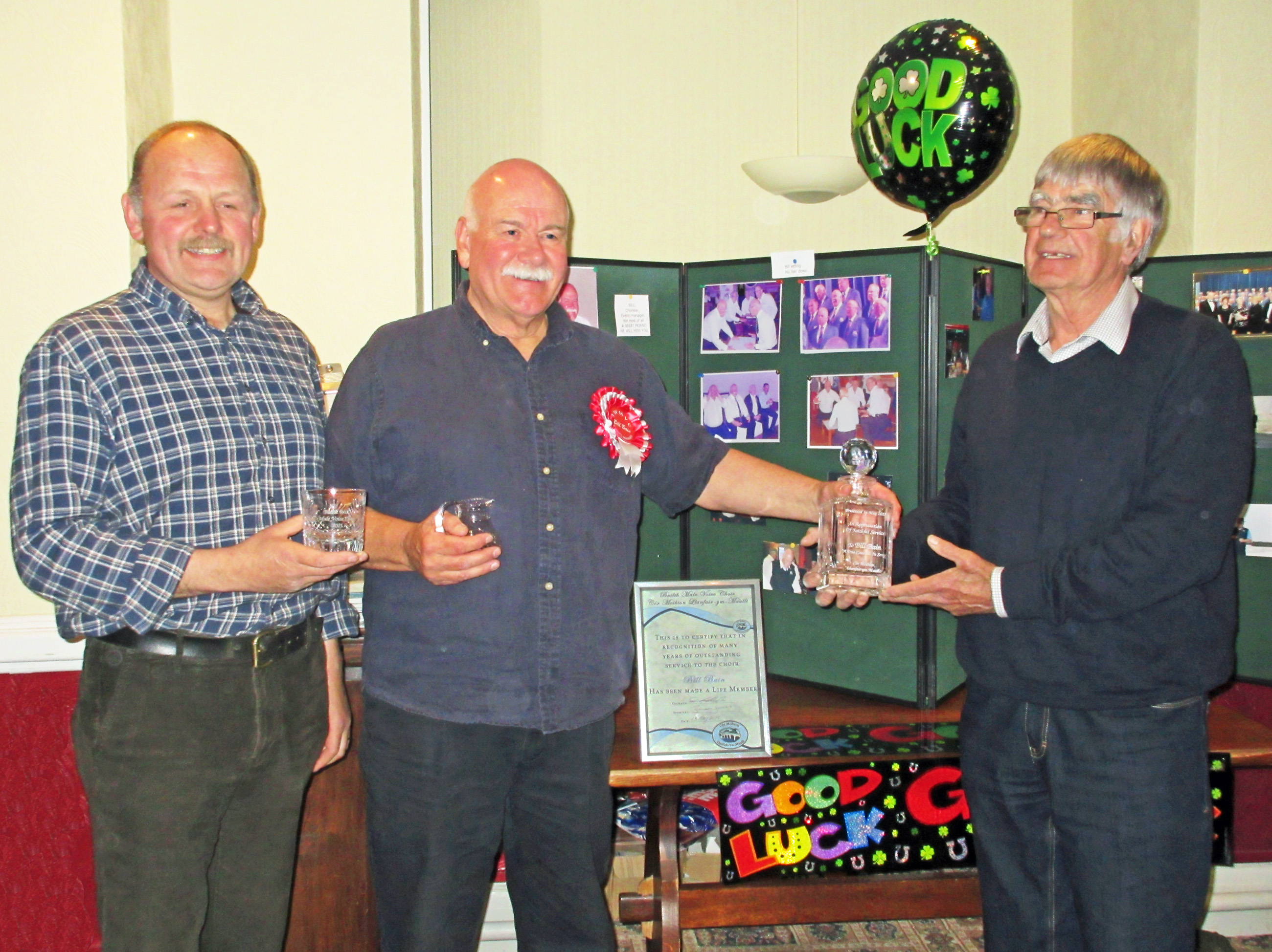 On their return to Builth members of the Choir held a reception to thank Bill for the many years service he had given to the Choir in the capacity of Secretary and Events Manager. The President, Jim Evans, awarded Bill life membership of the choir in recognition of the outstanding contribution he had made to the Choir over the past years. On behalf of the Choir the Chairman, Ian Coldrick, thanked Bill for his devoted service and presented him with a cut glass decanter and bottle of fine malt whiskey to enjoy in his new home in Wiltshire.