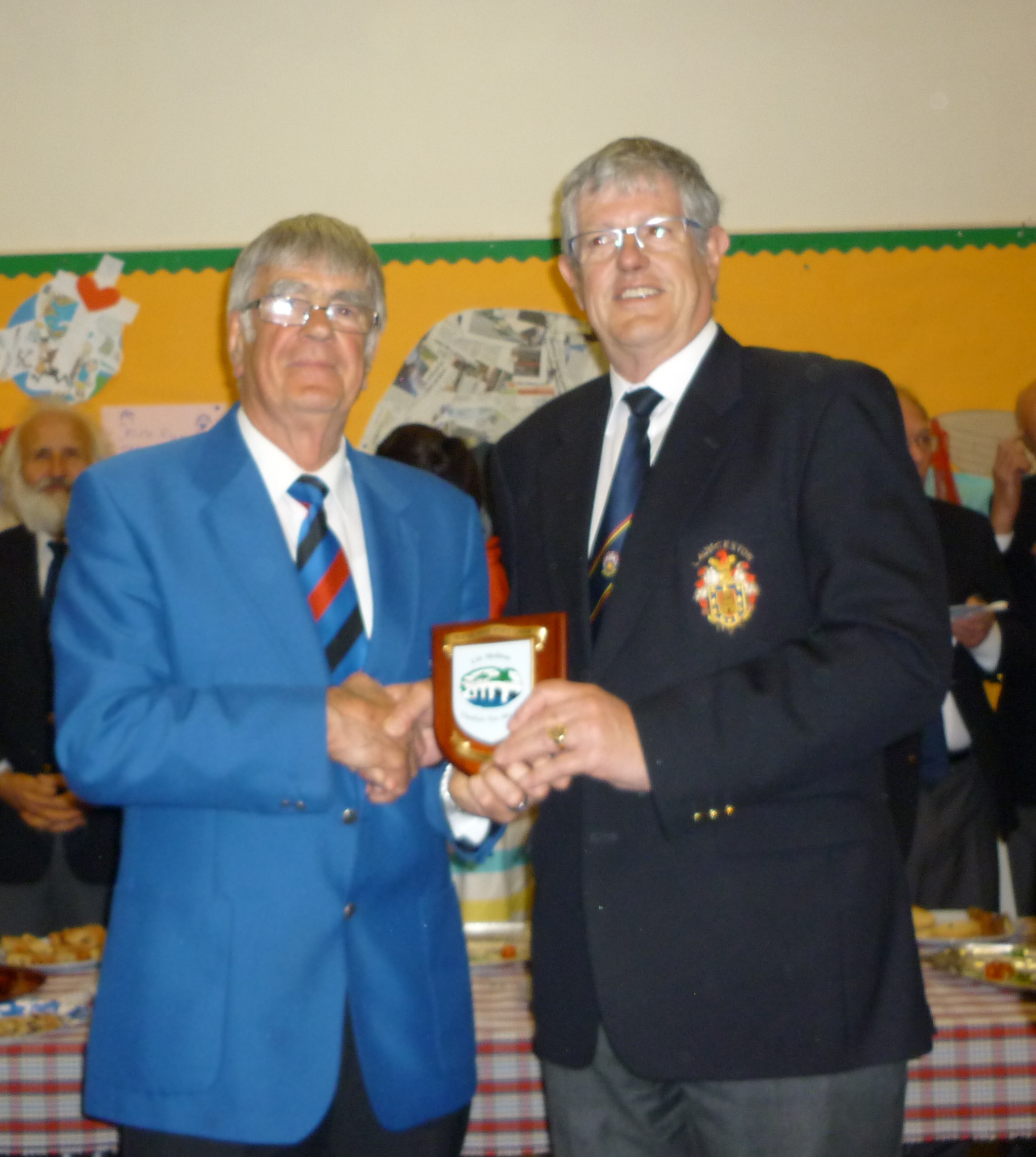 President Jim Evans presenting the president of Launceston MVC with a BMVC Shield to commemorate the Choir’s visit May 2015