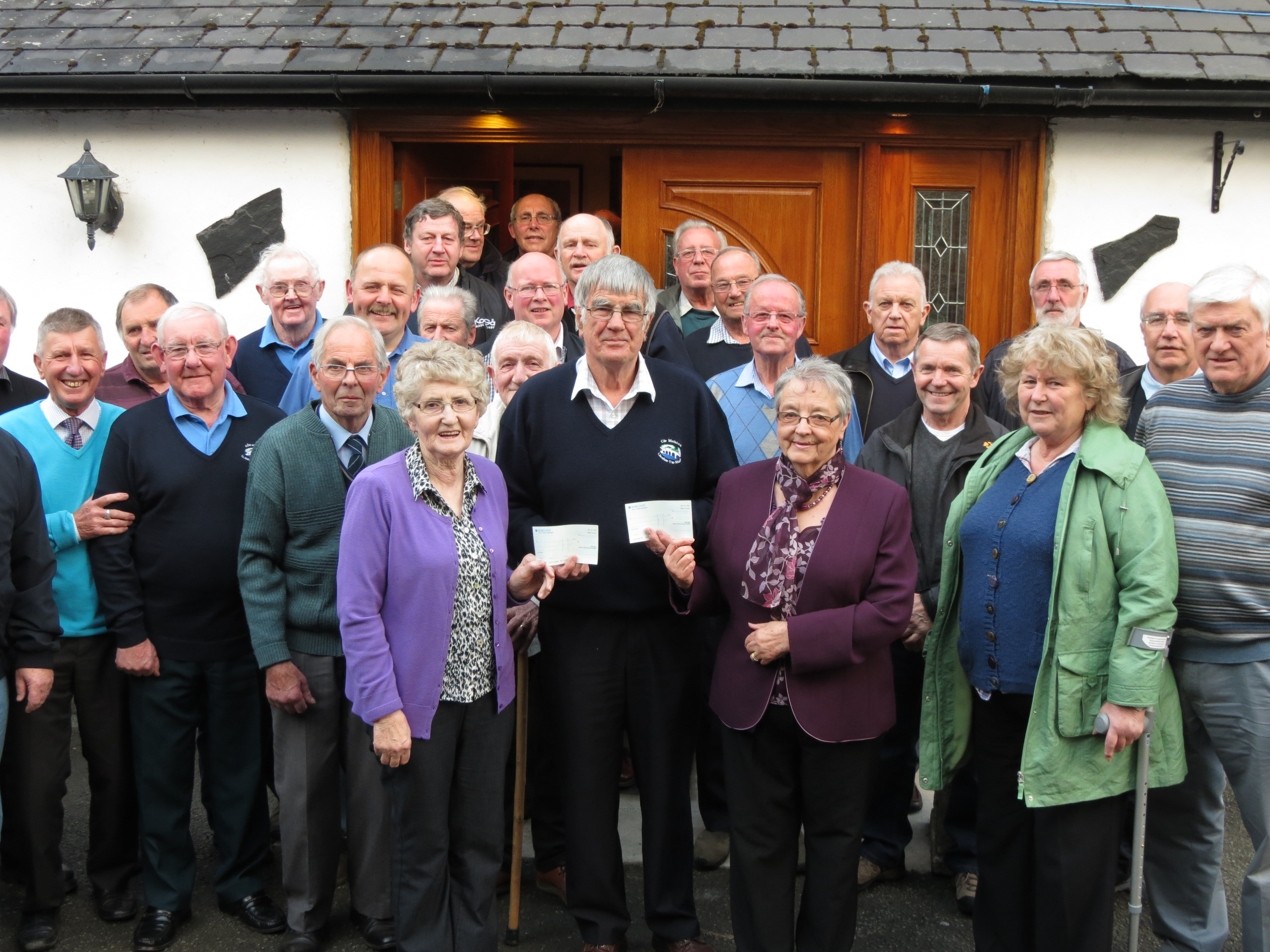 Some of the Choir are pictured above as President Jim Evans presents cheques for £600 to Margaret Watkins and Margaret Evans. The money was raised through a concert earlier this year and is donated to the Cystic Fibrosis Trust in memory of Bryan Watkins and to Cancer Research UK in memory of Brian Evans, two old friends from the baritone section who died last year.