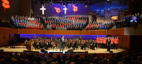 A highlight of the evening was the massed choir backing the vocals of Russell Watson in a new song to be released in support of service charities. “Homeground” is a haunting piece arranged by Alwyn Humphries, Wales’s most prolific arranger, who also conducted the massed choir during the evening. Along with accompanists David Last on the piano and David Geoffrey Thomas on the organ, the choir were warmly applauded. The audience were treated to some superb music on a Remembrance evening which will certainly be remembered by all who took part and attended.
