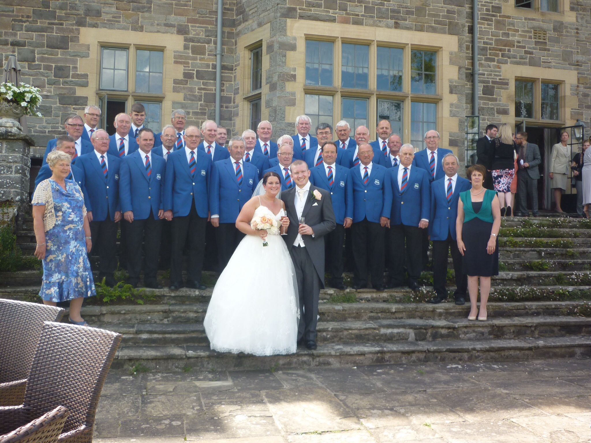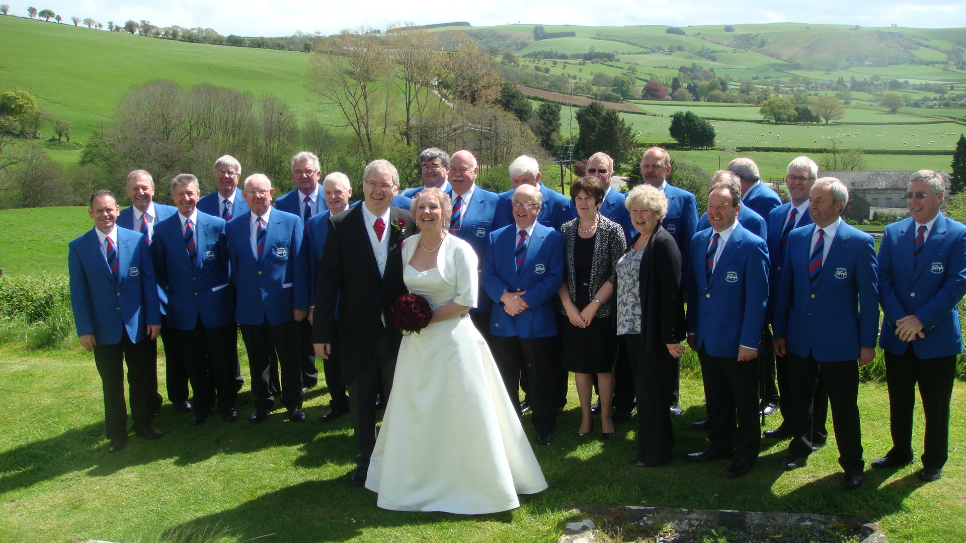 The Choir are pictured above at Marilyn and Doug’s wedding at Pilleth during a rare break in the rain which poured down for most of the rest of the day. At our second wedding venue in Beulah in the afternoon we saw soaked choristers pushing cars stuck in the mud!