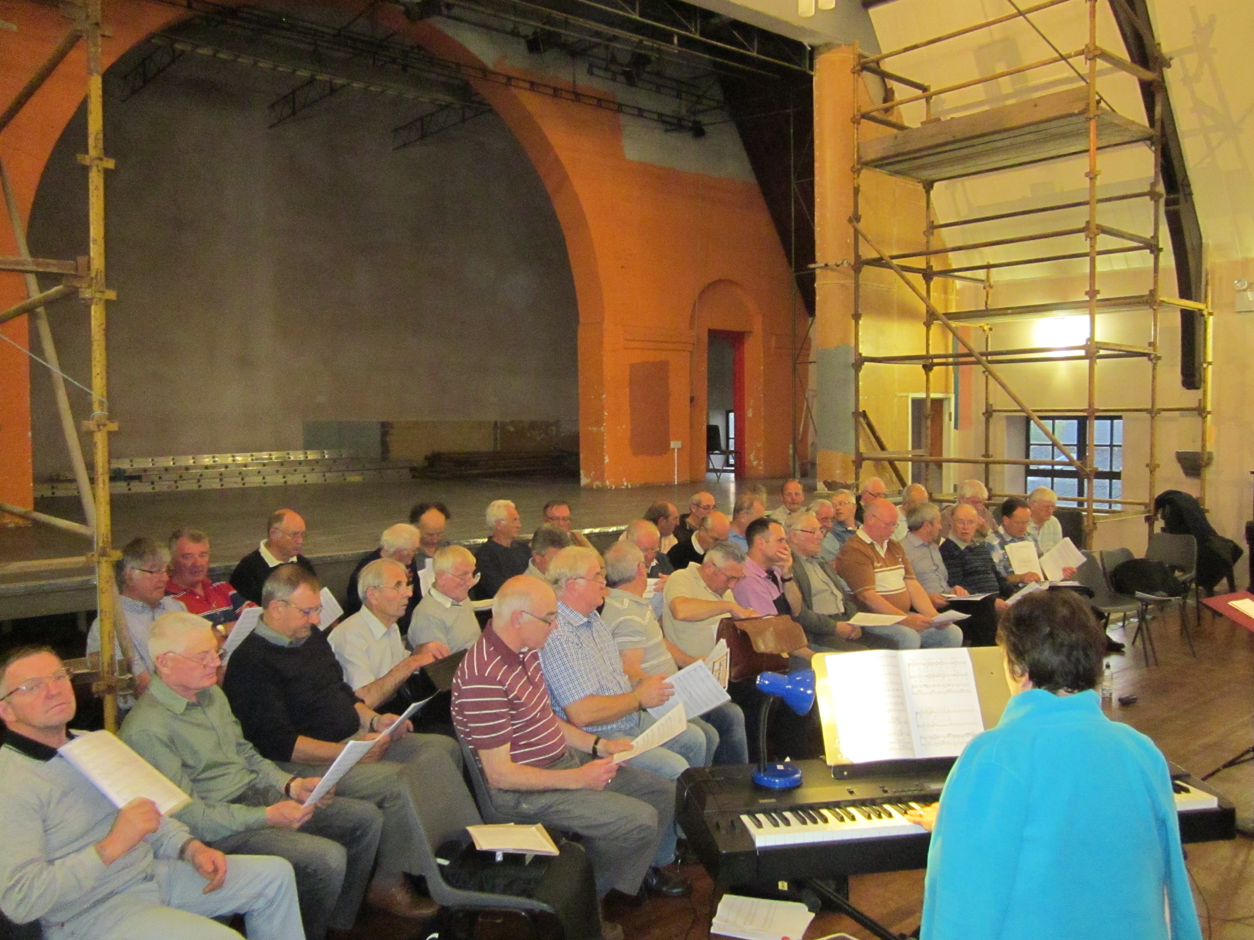 The Choir held last Monday’s practice in the Strand Hall at the request of the Town Council in order to test the acoustics since the refurbishment. There is still a bit of work to do, but it seems that the removal of the false ceiling may have improved the venue for singing and the newly revealed brick arch across the stage is very impressive.