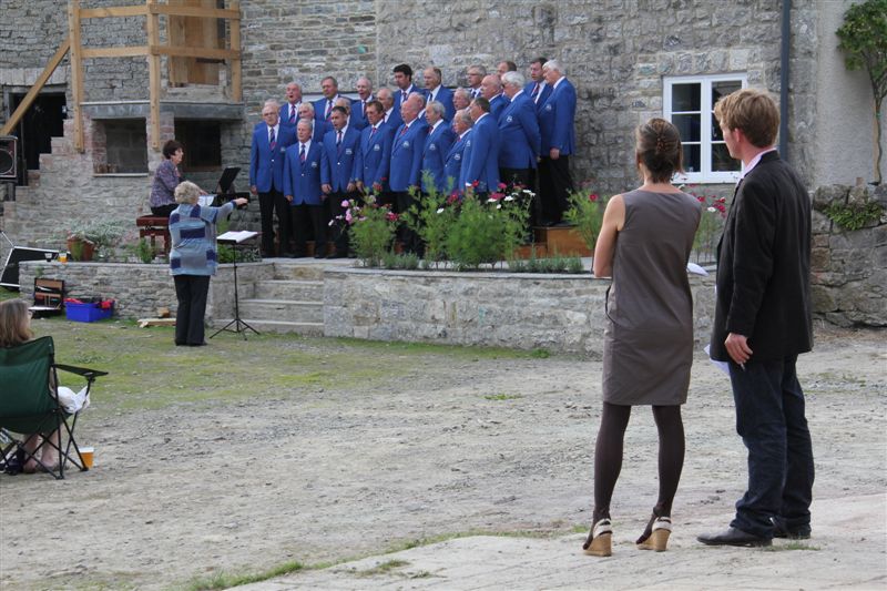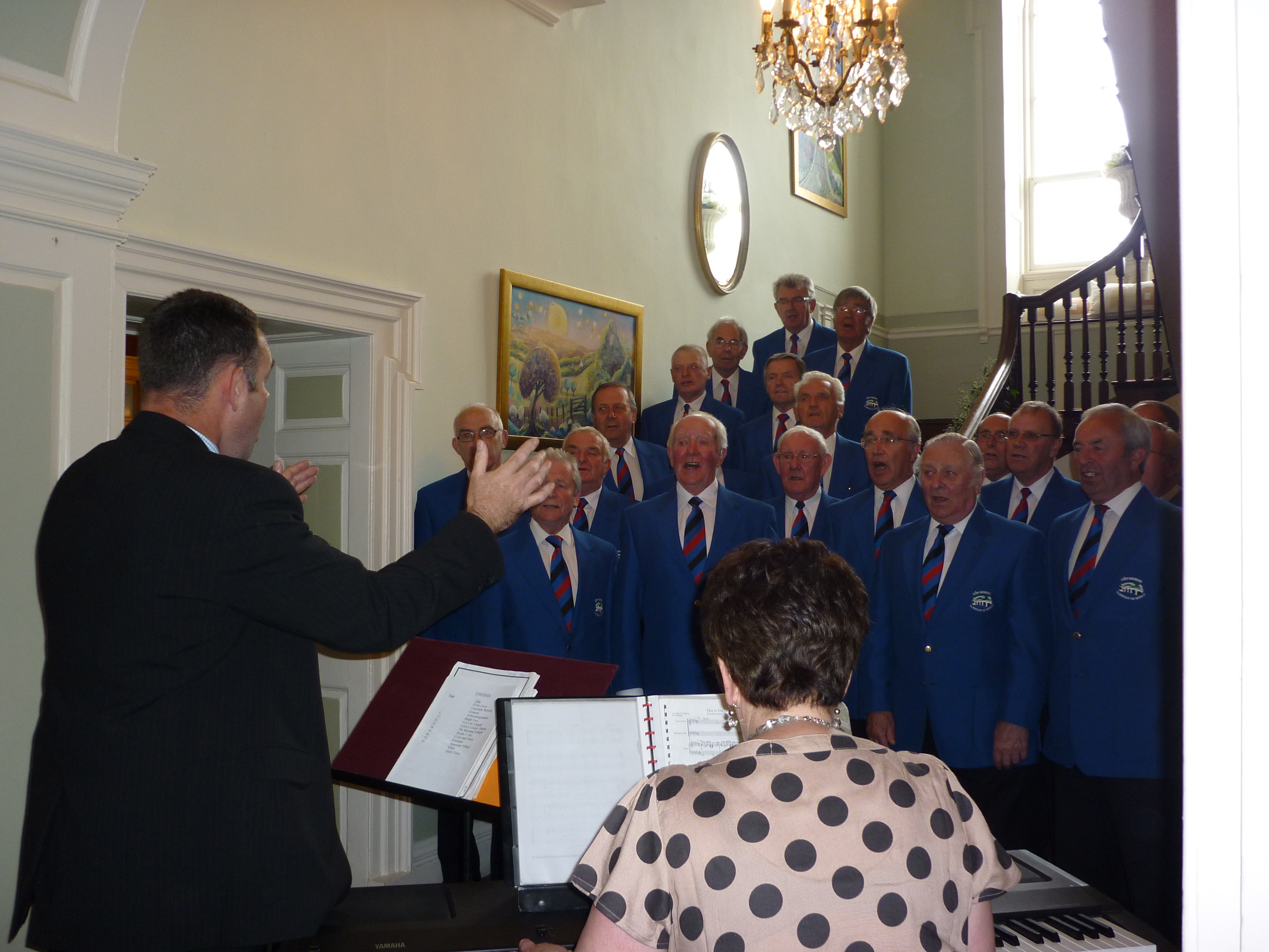 On our Monday night practices we are used to some visitors from all over the world, but on this occasion we were overwhelmed with about thirty friends from Bad Rappenau in Germany who were visiting their twin town of Llandrindod. They gave us thunderous applause for our efforts, even when we repeated them as we hadn’t got them quite right the first time! Afterwards in the bar we shared a great sing-song with our guests, including Big Klaus, the coach driver, who we remembered from our last tour there. He sang his favourite song “Country Roads” before they had to go. They are hoping the choir can visit them again soon, maybe for the “Oktoberfest” next year.