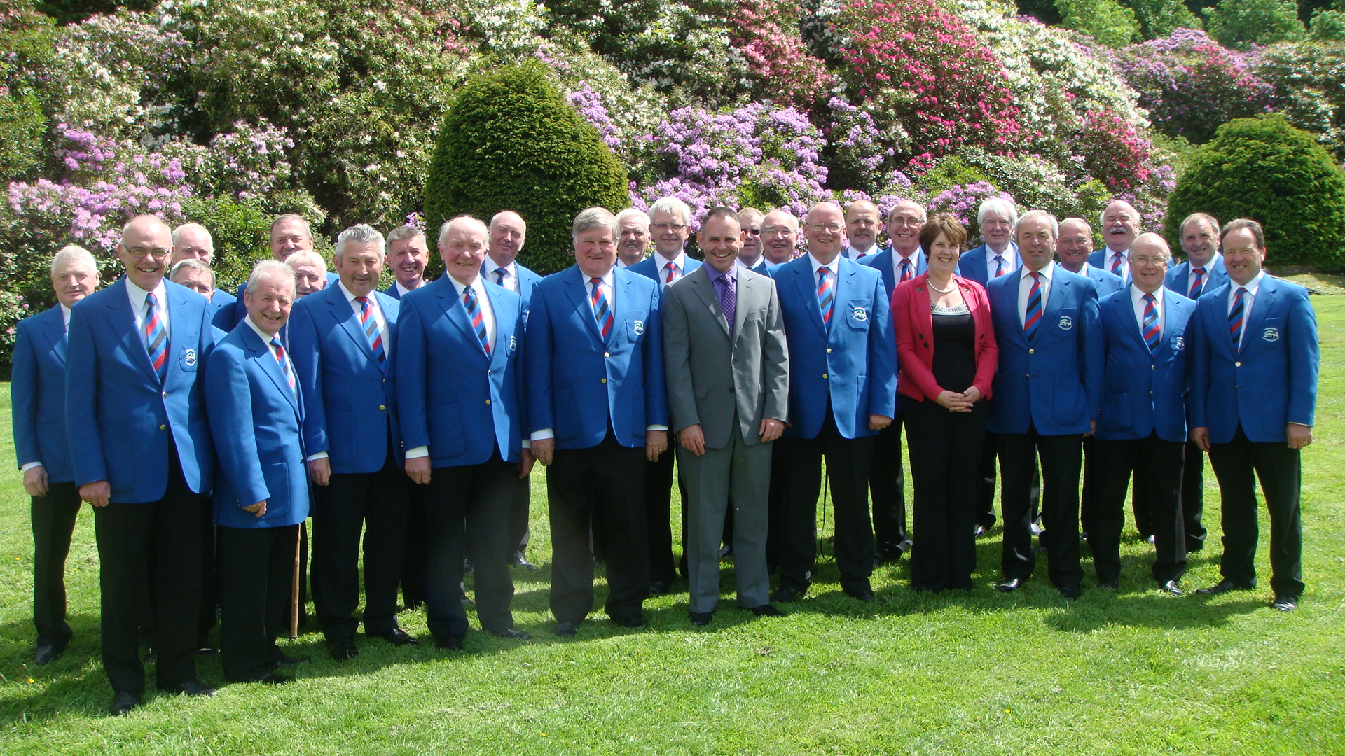 The longest-serving member was John Evans (The Bryn) who was with the choir for just over 40 years, Danny Jones served 35 years and Dr Roger Harriss for 26 years (these three are pictured here with Chairman Gwynfor Evans)