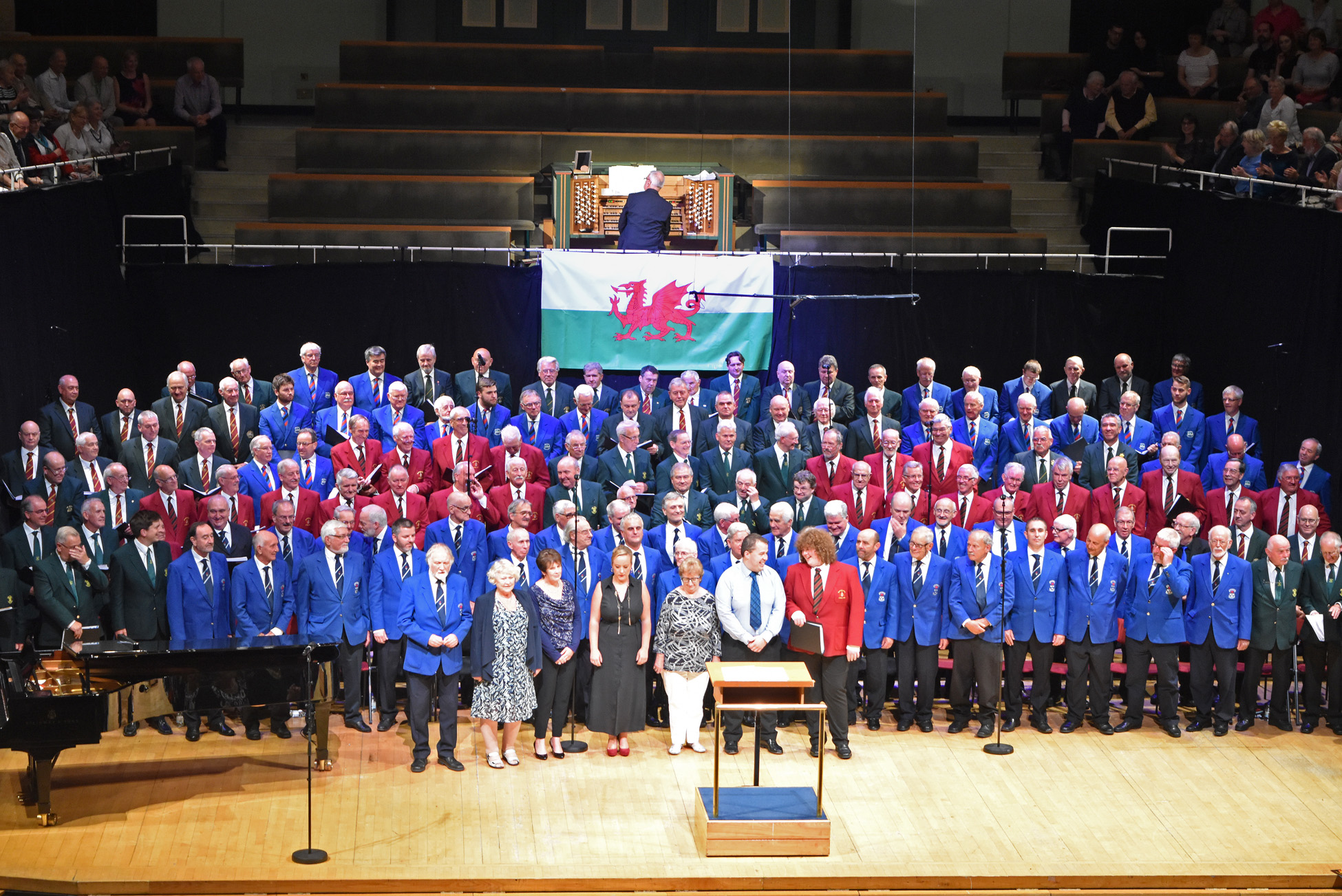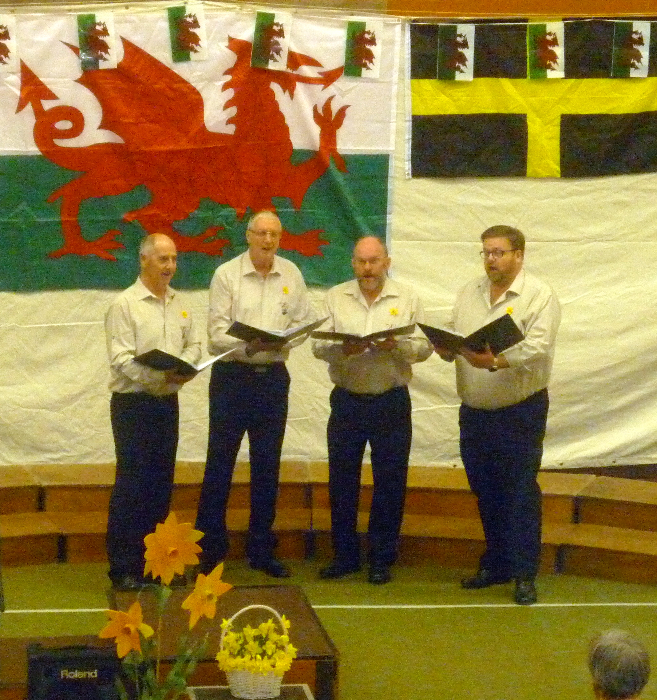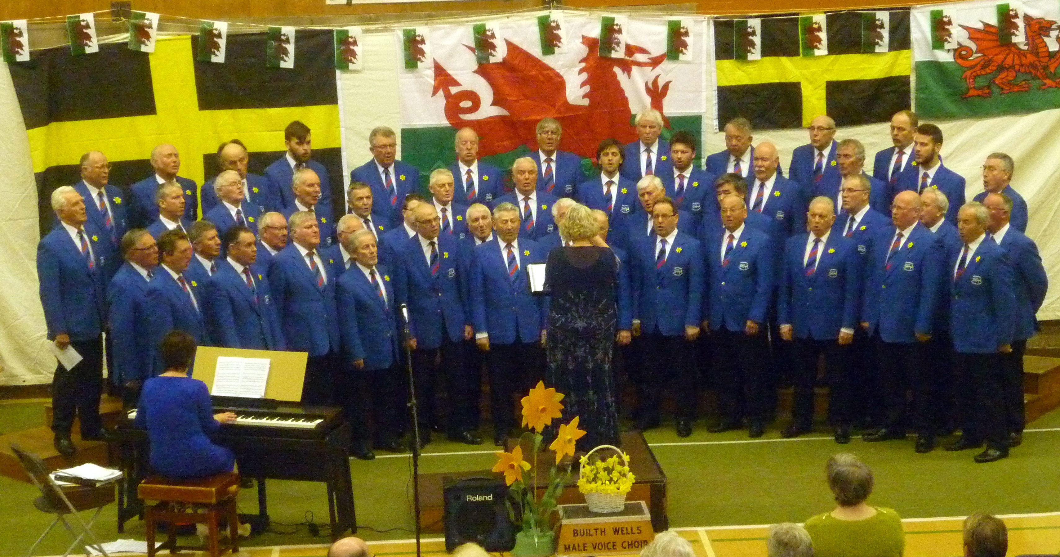On Saturday 27th February Builth Male Voice Choir hosted one of its most successful St. David’s Day Concerts at Builth Wells Leisure Centre. The Concert received tremendous support from regular concert attendees and the people of Builth that ensured a packed and enthusiastic audience in the hall, which was appropriately decorated with Welsh flags and banks of daffodils.