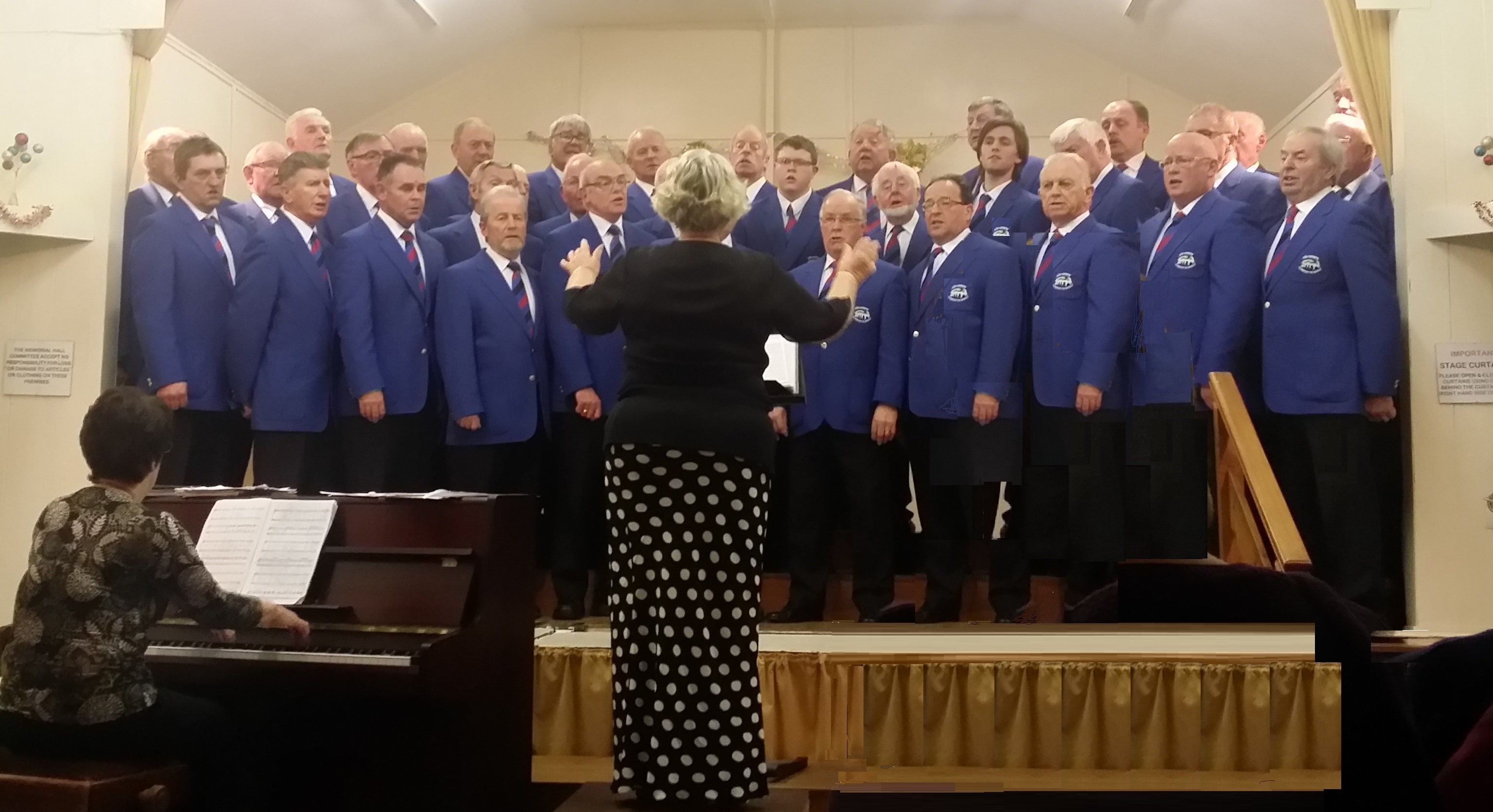 The Choir concluded 2016 with the customary entertainment of guests at the Lake Hotel in Llangammarch.The concert was compered by Jeff Thomas and sang a variety of pieces ranging from “I walk the line” to “Bring Him Home”. Over 25 guests were very appreciative and a request by an ex military man in the audience to sing “Men of Harlech” was referred to “later in the bar”. The programme was conducted by Luned Jones, with Ann Bufton, accompanist.
