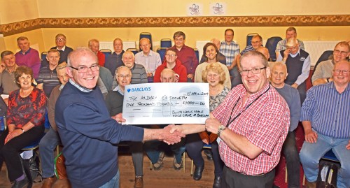 Pictured (left) is Chairman Viv Jones, presenting a cheque for £1,000 to David Horne, representing Alzheimer’s Society Cymru.