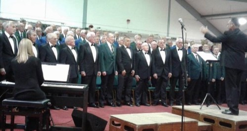 This opportunity took place in Builth Wells last Saturday (16th) when choristers from the Builth Male Voice Choir joined those from Brecon, Dathlu, Cwmtawe, Y Gyrlais, Rhayader and Talgarth in the Clwyd Morgannwg Hall at the Royal Welsh Showground.