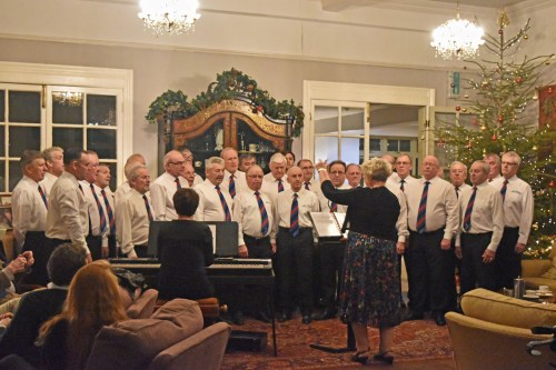 The Choir entertained guests at the Lake Country House Hotel in Llangammarch Wells at Christmas. The concert was compered by David Power and sang a variety of pieces ranging from “Benedictus” to “Calon Lan”. The large number of guests showed their appreciation of an evening’s entertainment which concluded their Festive celebrations. The programme was jointly conducted by Luned Jones and Adrian Morgan with Ann Bufton as accompanist.