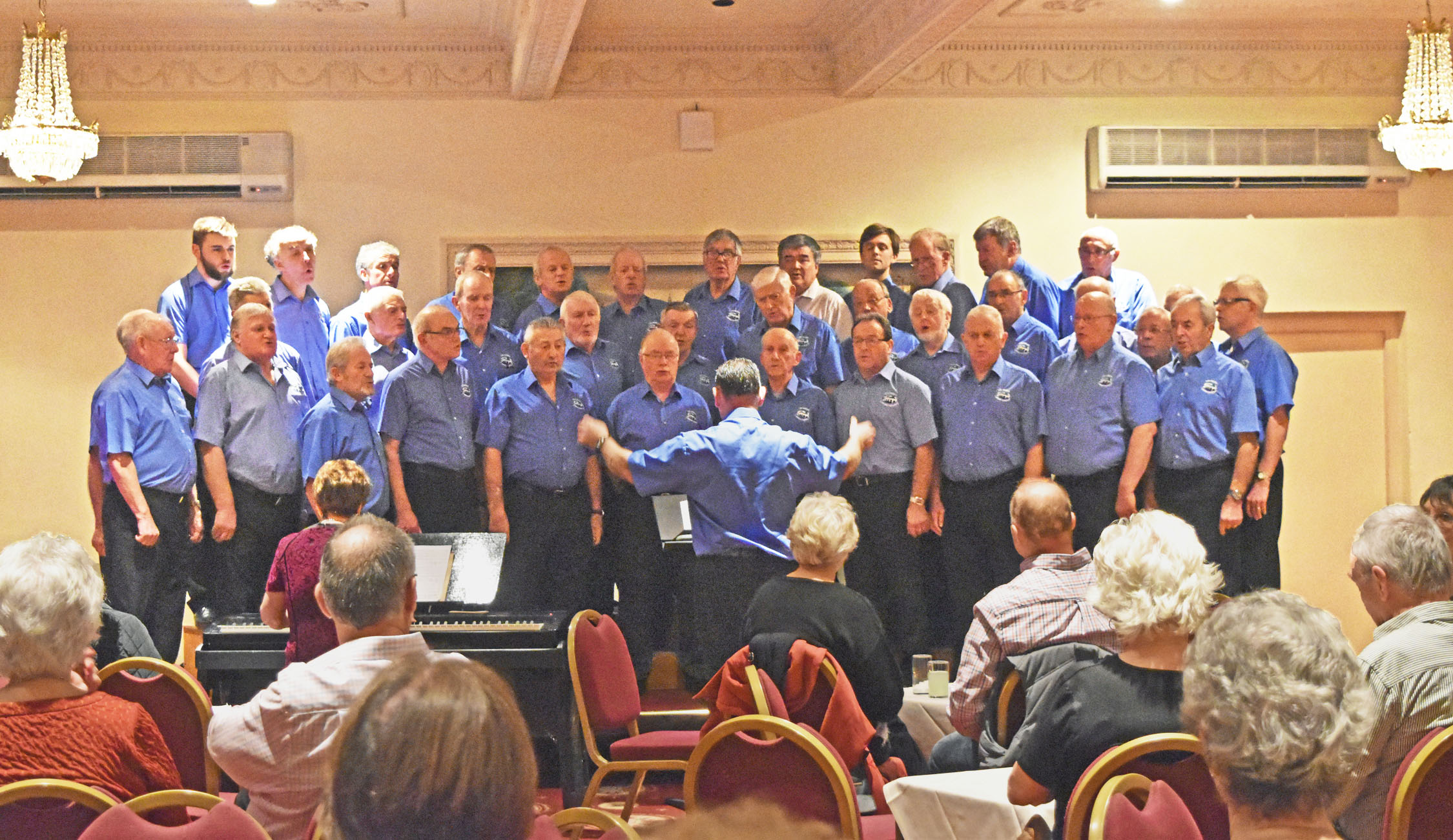 The Choir completed its engagements for 2017 singing for guests staying on a New Year’s Break at the Metropole Hotel, Llandrindod Wells. David Power was the compere with Luned Jones and Adrian Morgan conducting two sets. Ann Bufton was the accompanist. Mike Labette played a cameo role entertaining the packed audience to his amusing rendition of “The Auld Axe” in the break between each set of songs.